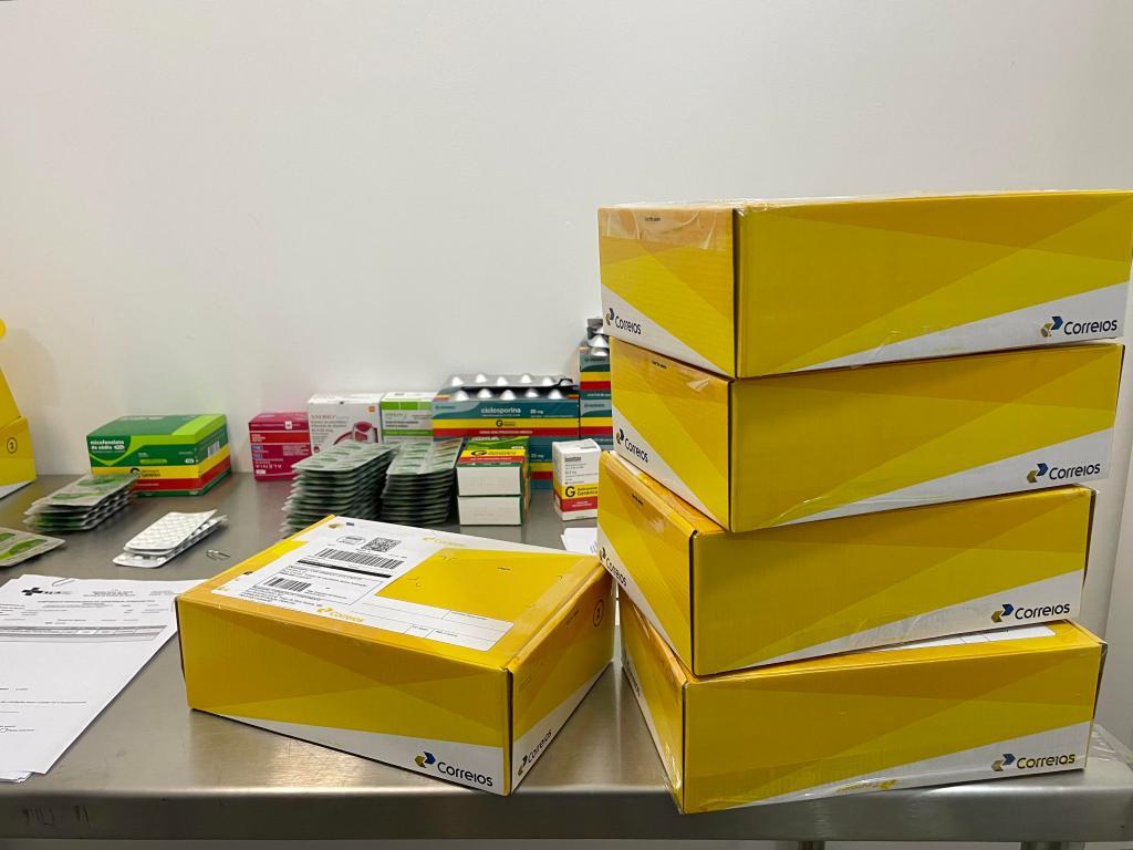 A Farmácia Estadual realiza a separação e o empacotamento dos medicamentos do paciente no programa Remédio em Casa. Um profissional dos Correios realizará a coleta na unidade e transportará a encomenda para um Centro de Distribuição. Posteriormente, o medicamento será direcionado ao endereço cadastrado.