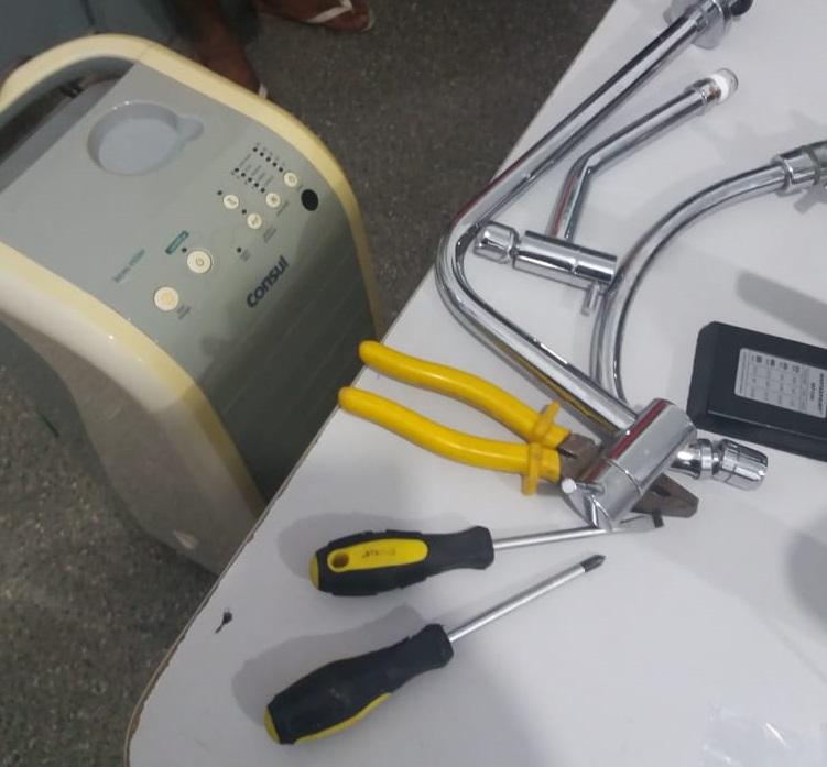 Quando os militares chegaram no local, já encontraram V.J.P. imobilizado por um segurança particular. Ele carregava vários objetos de origem duvidosa. Questionado, não soube explicar a procedência dos produtos, mas é conhecido dos policiais por praticar vários furtos na região.