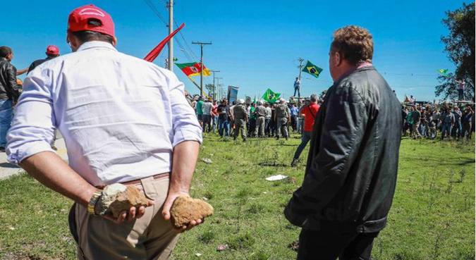 A caravana do ex-presidente Luiz Inácio Lula da Silva foi atacada com pedras e ovos por manifestantes contrários ao petista durante a passagem por São Miguel do Oeste (SC), na tarde deste domingo, 25. Lula participou de manhã de um ato com agricultores familiares em Nova Erechim (C). Durante o evento, a presidente nacional do PT, Gleisi Hoffmann, alertou para a presença de manifestantes contrários ao ex-presidente em São Miguel do Oeste. As pedradas chegaram a trincar os vidros de dois dos três ônibus que integram a caravana, entre eles o veículo em que Lula viajava. Cerca de trinta manifestantes fecharam o trevo de acesso à cidade. Quando a caravana parou, os limpadores de para-brisas dos ônibus foram arrancados, diversos ovos atirados contra os vidros dos veículos e, depois, as pedras. Um dos ovos atingiu o carro da reportagem do jornal O Estado de S. Paulo. "O que aconteceu foi um atentado criminoso. Poderia ter acontecido uma tragédia. O motorista ficou sem visibilidade", disse o deputado Paulo Pimenta (PT-RS), líder do PT na Câmara. Alguns metros adiante, policiais militares acompanharam mas não interferiram na manifestação. Os protestos violentos e tentativas de bloquear a passagem da comitiva do petista tem marcado a caravana de Lula pena região Sul, iniciada segunda-feira, em Santana do Livramento (RS). O ex-presidente foi obrigado a alterar o itinerário da viagem, fazer viagens de avião (a previsão inicial era de usar apenas ônibus) e impedido de entrar em Passo Fundo (RS). No sábado à noite, em Chapecó (SC), houve confronto entre manifestantes anti-Lula e militantes petistas que participavam de um ato na praça central da cidade. Integrantes da caravana acusam a participação de grupos de extrema-direita apoiadores do deputado Jair Bolsonaro. Em Florianópolis, Lula ressaltou que os participantes das atividades da caravana são "gente da paz" mas disse que eles devem "retribuir" as agressões sofridas. Em Chapecó, Lula falou em "dar porrada". "Nós não podemos permitir que pessoas sejam espancadas enquanto esperamos que a polícia cumpra seu papel. Se a polícia não pode garantir a segurança da caravana, que nos diga", afirmou Pimenta. Segundo ele, uma ideia é agregar outros dois ônibus com militantes à caravana para contrapor às manifestações contrárias.